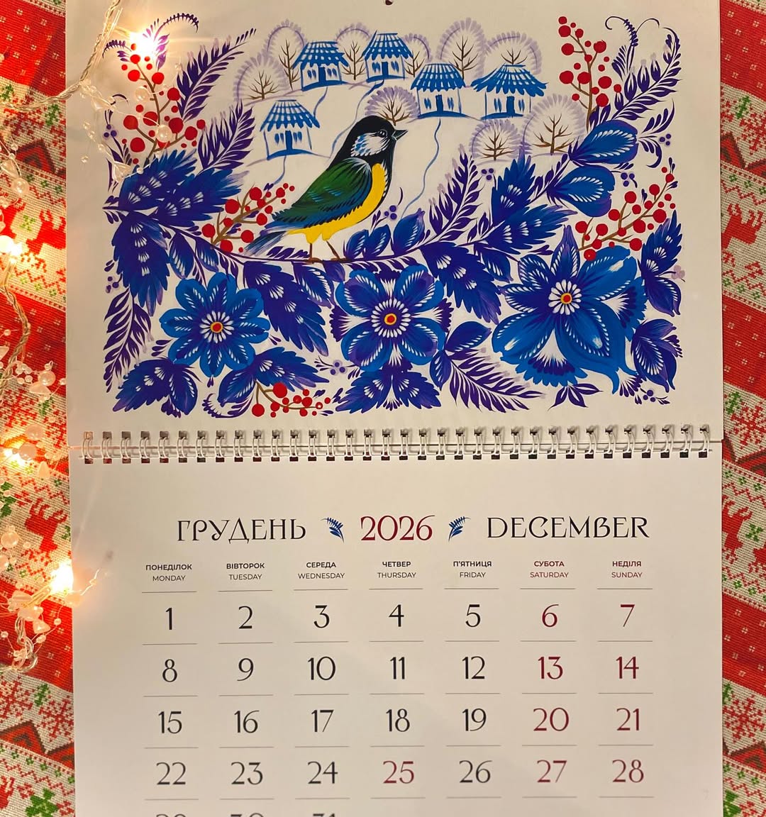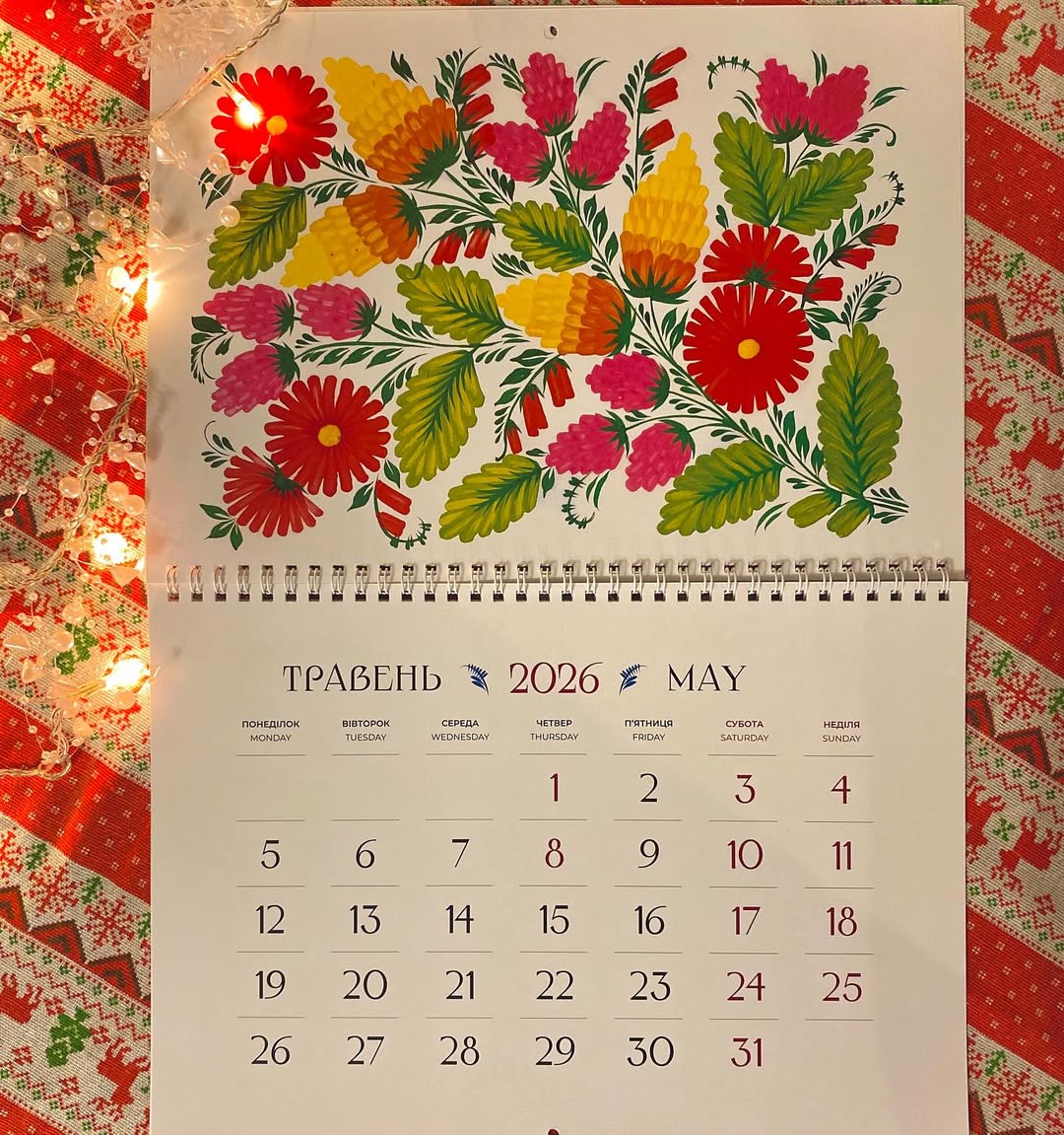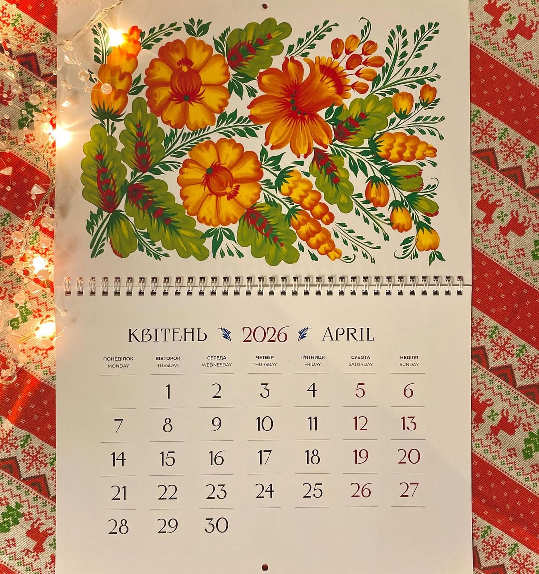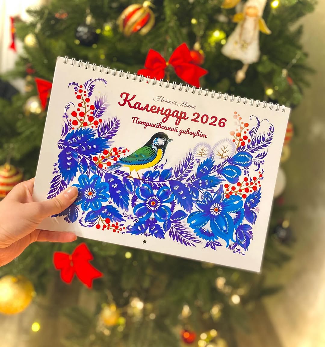 "Петриківський дивоцвіт" перекидний календар на 2026 рік з роботами Наталії Масюк